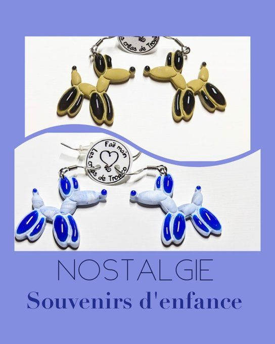 Amusez vous avec style grâce à nos boucles d'oreilles chien ballon ! Ces petits trésors, faits à la main en pâte polymère, apporteront une touche d'originalité à toutes vos tenues