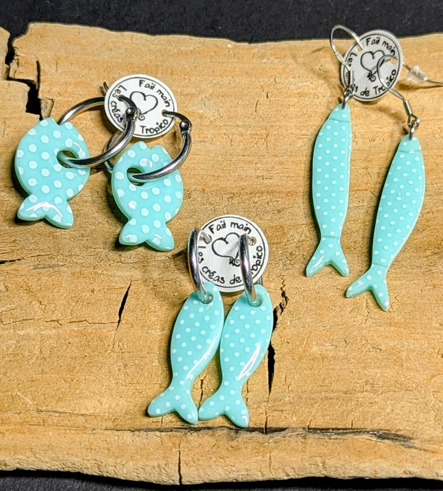 Le motif du poisson évoque la liberté et la fluidité. En choisissant cette couleur vert menthe, nous avons voulu capturer l'éclat d'un lagon paisible. Ces boucles d'oreilles apportent une note poétique à votre quotidien, transformant une tenue classique en un ensemble pétillant et plein de vie. C’est le bijou parfait pour celles qui n’ont pas peur d’afficher leur originalité avec douceur.