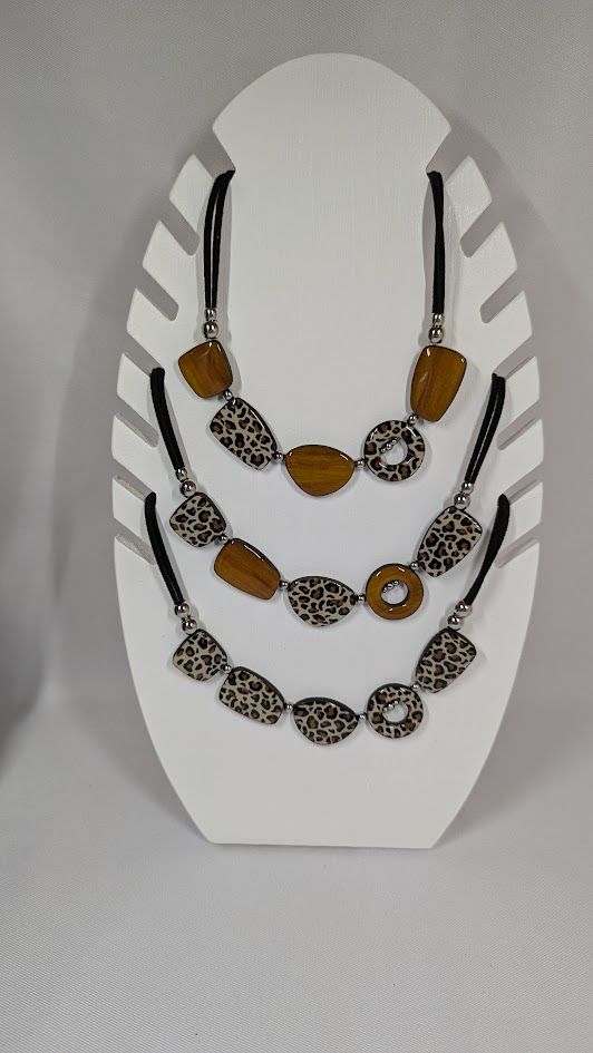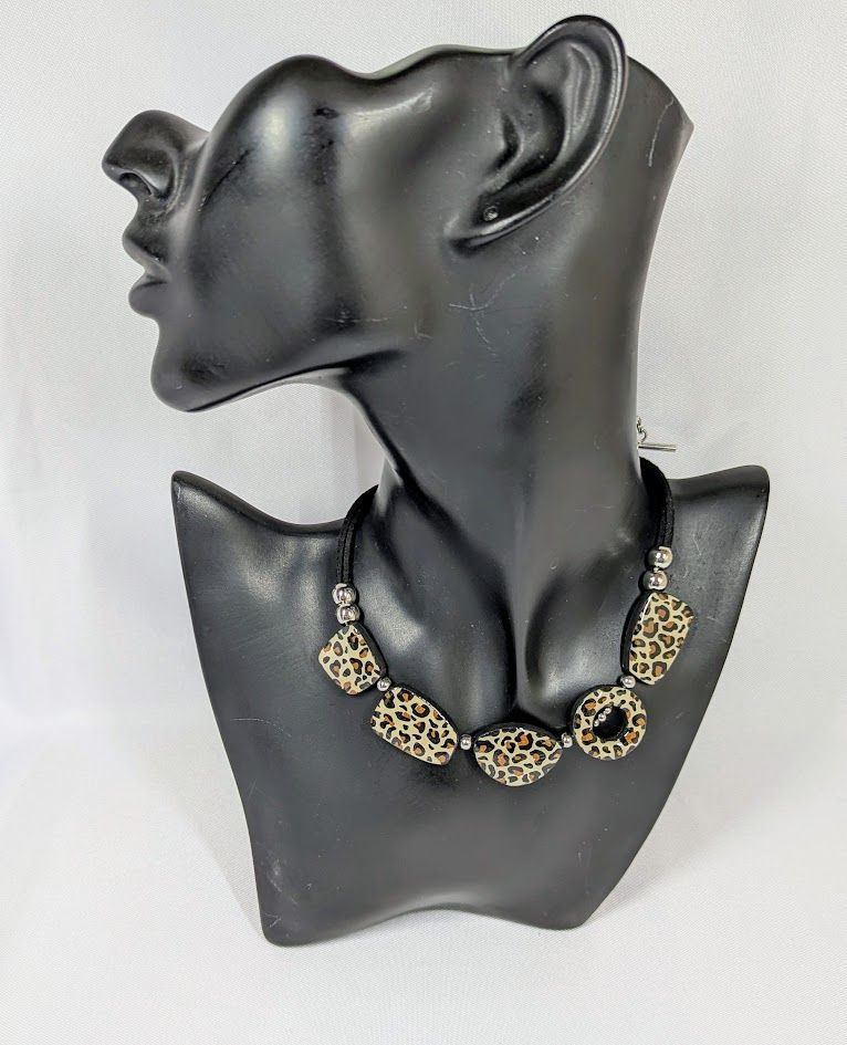 Oubliez les bijoux discrets ! Ce collier est une véritable déclaration de style, avec son motif léopard audacieux qui attire tous les regards. Chaque tache est unique, comme les empreintes d'un félin, faisant de chaque collier une pièce d'exception.